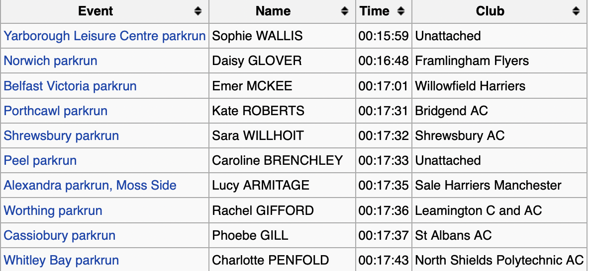 Another athlete running well again was Daisy Glover who broke 17 minutes with 16:48 at Norwich parkrun in Norfolk. Having already run a 17:20 parkrun PB this year on the first of January (what a way to start the year) it’s another big leap forward for the Framlingham Flyer. It will be interesting to see what Glover is racing next and if there’s a big PB on the horizon.